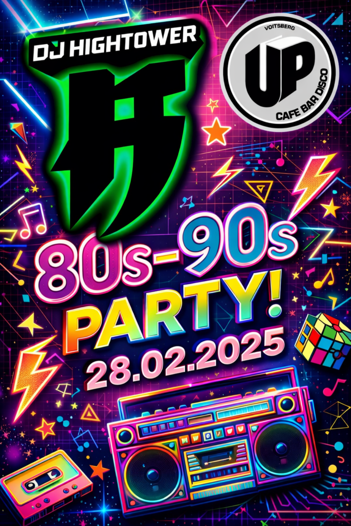 Von Synth-Pop, Disco & New Wave bis hin zu Eurodance, Hip-Hop und den legendären Party-Anthems der 90er – hier bleibt garantiert niemand sitzen. Neon-Vibes, Retro-Feeling und pure Nostalgie sorgen für eine Nacht voller Energie, Erinnerungen und ausgelassener Stimmung.